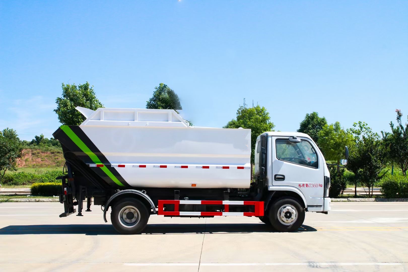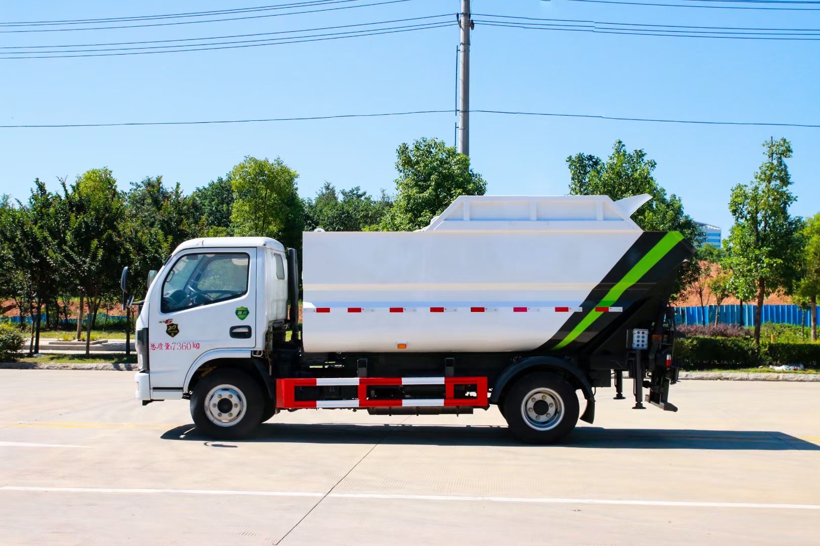 該車型是我公司根據環(huán)衛(wèi)市場需求開發(fā)的一種新型垃圾車,選用東風公司生產的二類汽車底盤。由垃圾箱、翻桶機構、舉升機構、刮板及滑板壓縮機構、液壓系統(tǒng)和電氣系統(tǒng)等部件組成。具有外形美觀、駕駛舒適、操縱方便、機動靈活、可靠性高、運營成本低、上料效率高等特點。適用于城市、鄉(xiāng)鎮(zhèn)的垃圾收集轉運,箱體采用船型斗結構,徹底解決了垃圾運輸過程中的污水滴漏等問題。