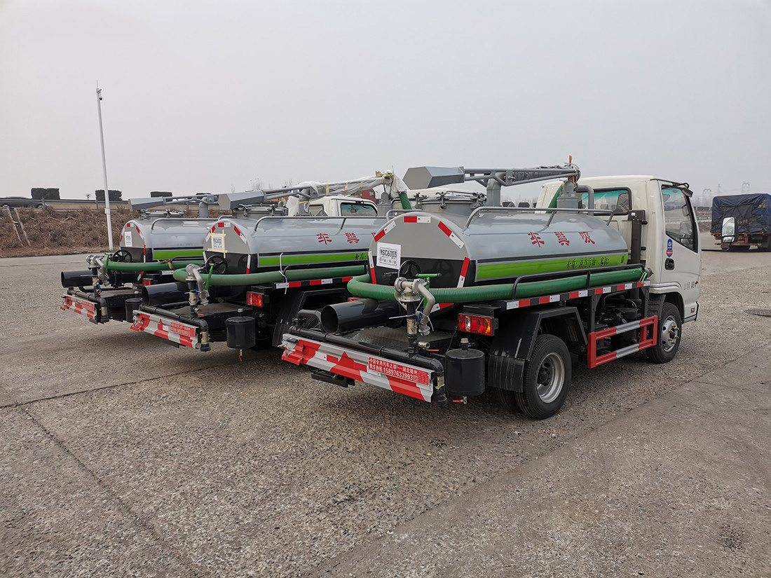 上裝配置:罐體容積約3立方,武鋼Q235自動(dòng)焊接,壁厚5mm,封頭6mm,標(biāo)配5噸油泵真空泵,吸力大、吸程遠(yuǎn),可自吸自排。標(biāo)配防溢閥,視糞窗,罐后自流口1個(gè),罐旁洗手裝置,濯體頂?shù)鯒U270°旋轉(zhuǎn),帶8米吸糞管1根。