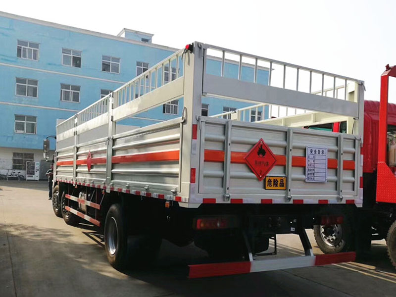 該車為危險品貨物運輸車,用于運輸具有**容器(瓶)包裝的易燃?xì)怏w(罐(瓶)裝壓縮氫、液化石油氣),類項號為2.1,和非易燃無毒氣體(罐(瓶)裝二氧化碳,氧氣,氮氣,氬氣),類項號為2.2.選裝貨箱側(cè)板、后門結(jié)構(gòu);選裝箱體結(jié)構(gòu).側(cè)防護(hù):材質(zhì)Q235,螺栓連接;后下防護(hù):材質(zhì)Q235,螺栓連接,斷面尺寸120X60mm,離地高度540mm;安裝具有衛(wèi)星定位功能的行駛記錄儀.裝有ABS,ABS型號:3631010-C2000,生產(chǎn)廠家:東科克諾爾商用車制動系統(tǒng)(十堰)有限公司.選裝前霧燈,駕駛室頂部裝飾燈為選裝件.僅選用前盤式制動器,前置排氣管,子午線輪胎,限速裝置的底盤,限速80km/h. |